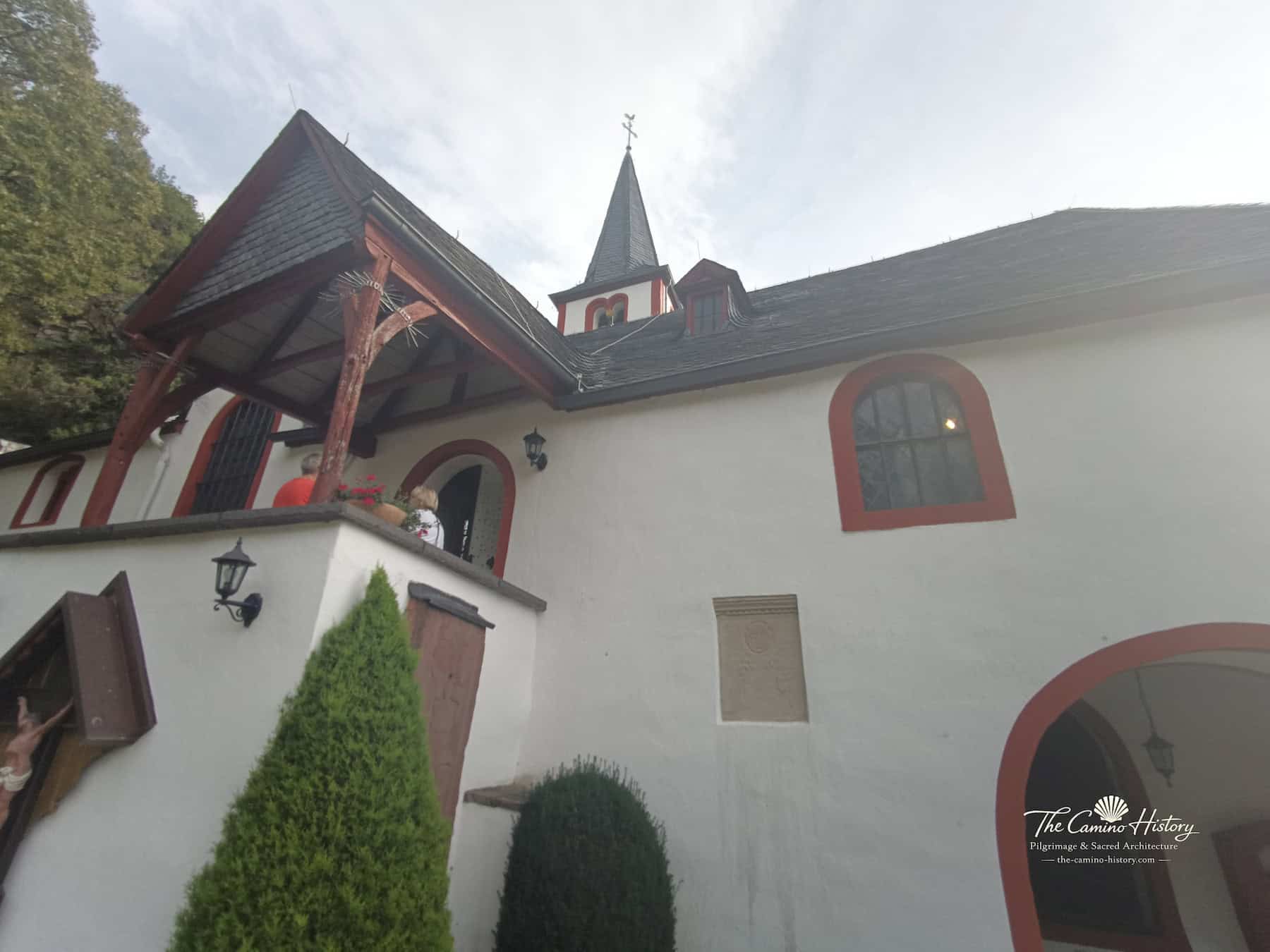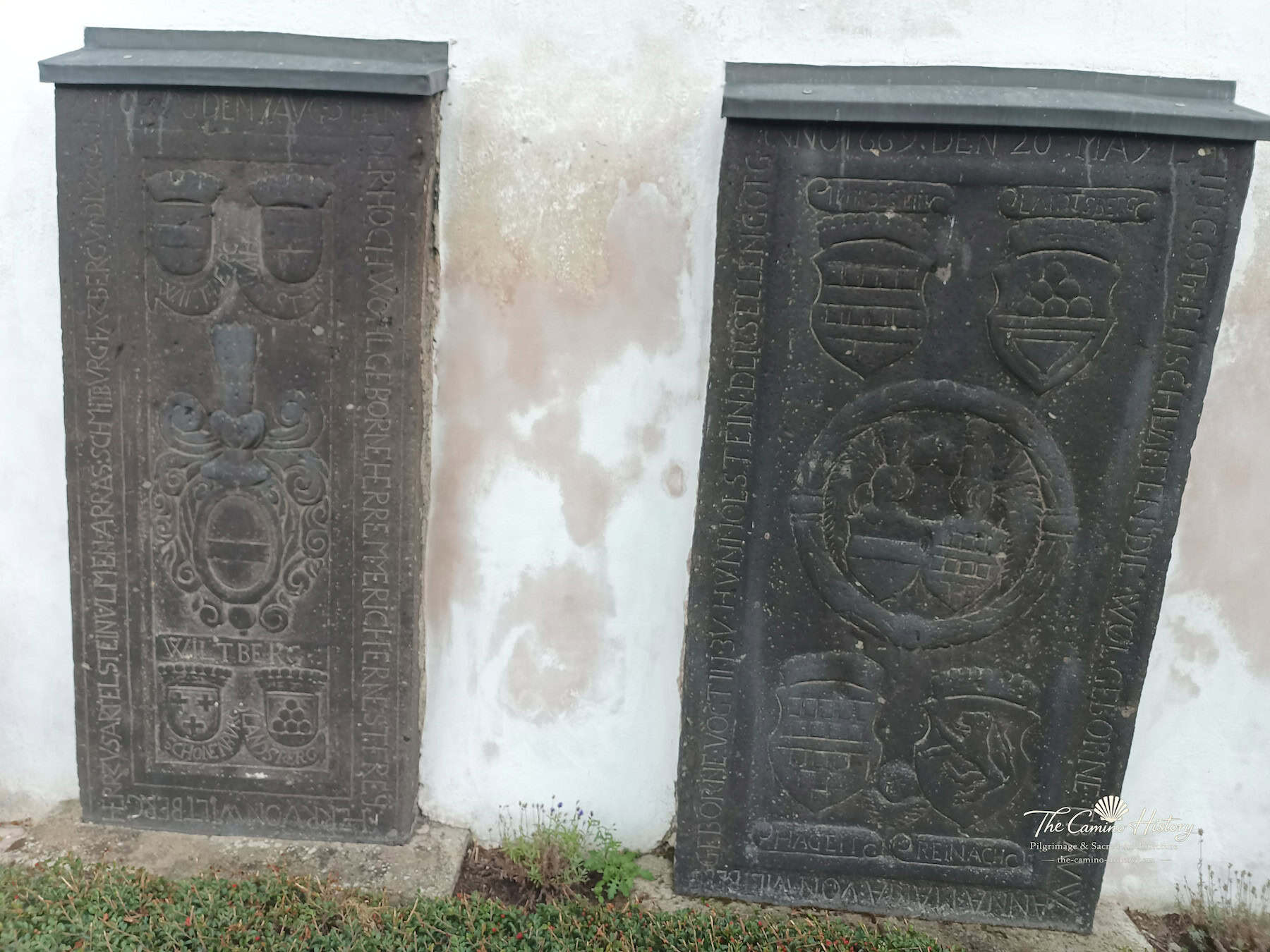 An der Außenwand der Kapelle sind große, alte Grabplatten angebracht, die an bedeutende Persönlichkeiten der Vergangenheit erinnern. Ein hölzernes Kreuz neben den Grabplatten unterstreicht die spirituelle Bedeutung dieses Ortes und macht die St. Michael Kapelle zu einem Ort der Besinnung und Erinnerung.