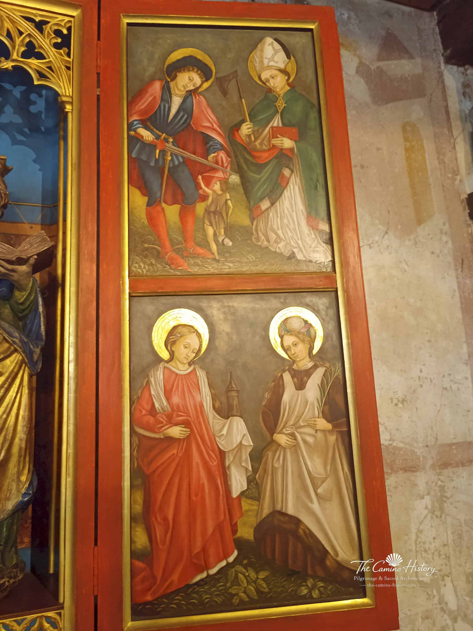 Der zweite Seitenaltar ist der Gottesmutter Maria gewidmet. In der Mittelkonsole stehen die heilige Elisabeth, die Gottesmutter Maria und die heilige Ursula. Die Flügel des Altars sind mit Darstellungen von weiteren Heiligen bemalt: Auf dem linken Flügel sind König Sigismund und der heilige Florian sowie die Heiligen Bischöfe Albuin und Ingenuin zu sehen, während der rechte Flügel den heiligen Martin, den heiligen Wolfgang sowie die heilige Barbara und die heilige Katharina zeigt.