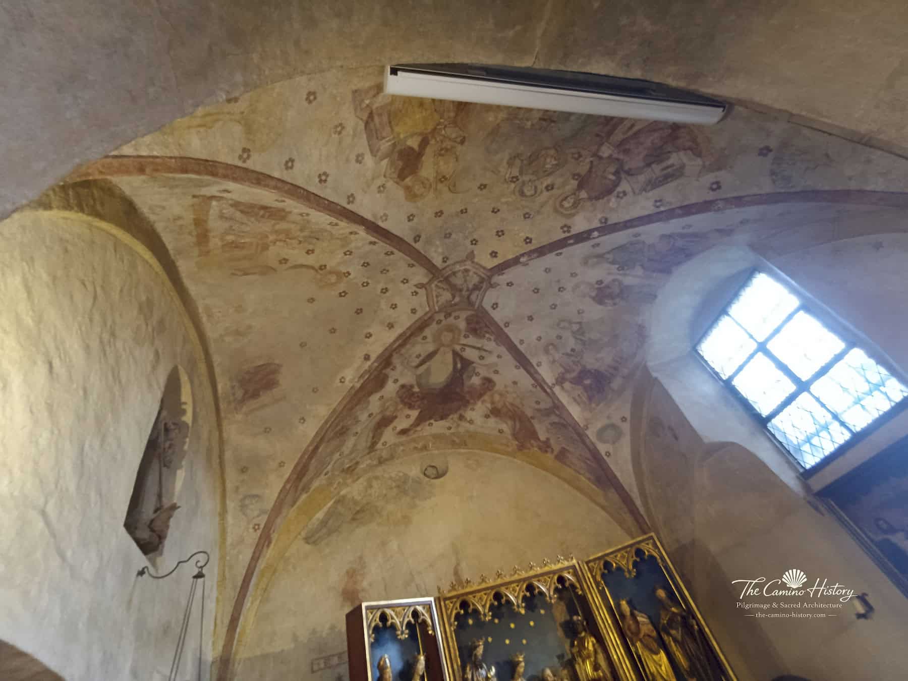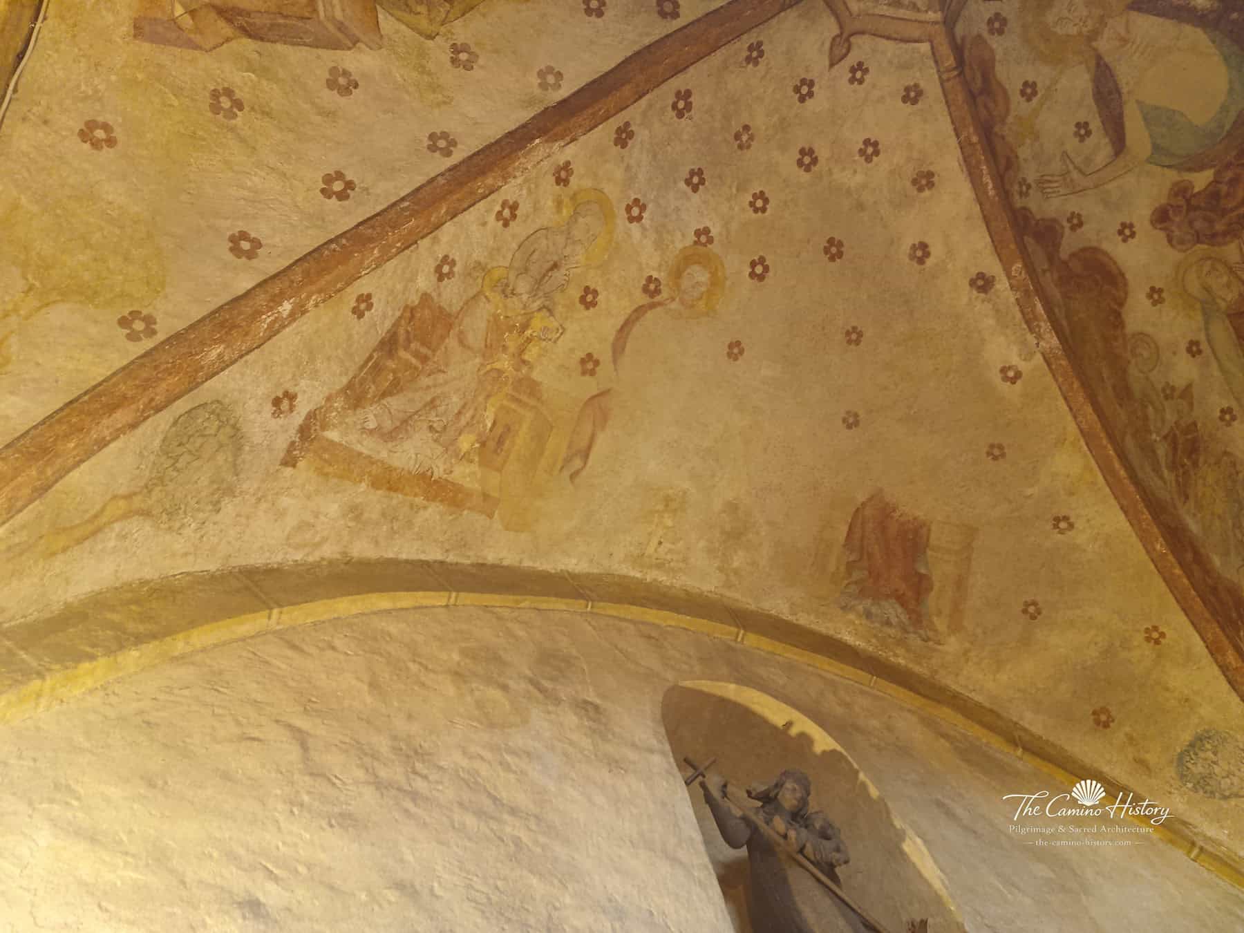Die St. Michael Kapelle beherbergt einige der eindrucksvollsten Wand- und Deckenmalereien der Region, die dieses sakrale Bauwerk zu einem außergewöhnlichen Zeugnis mittelalterlicher Kunst machen. Im Zentrum der Deckenmalerei steht „Christus als Weltenrichter“, umgeben von himmlischen Heerscharen und Heiligen, die sich zu einem dramatischen, spirituellen Gesamtbild verbinden. Dieses Werk, datiert auf das Jahr 1350, fasziniert durch die lebendigen Farben und die präzise Symbolik, die den Glauben und die Vorstellungskraft des Mittelalters widerspiegeln.