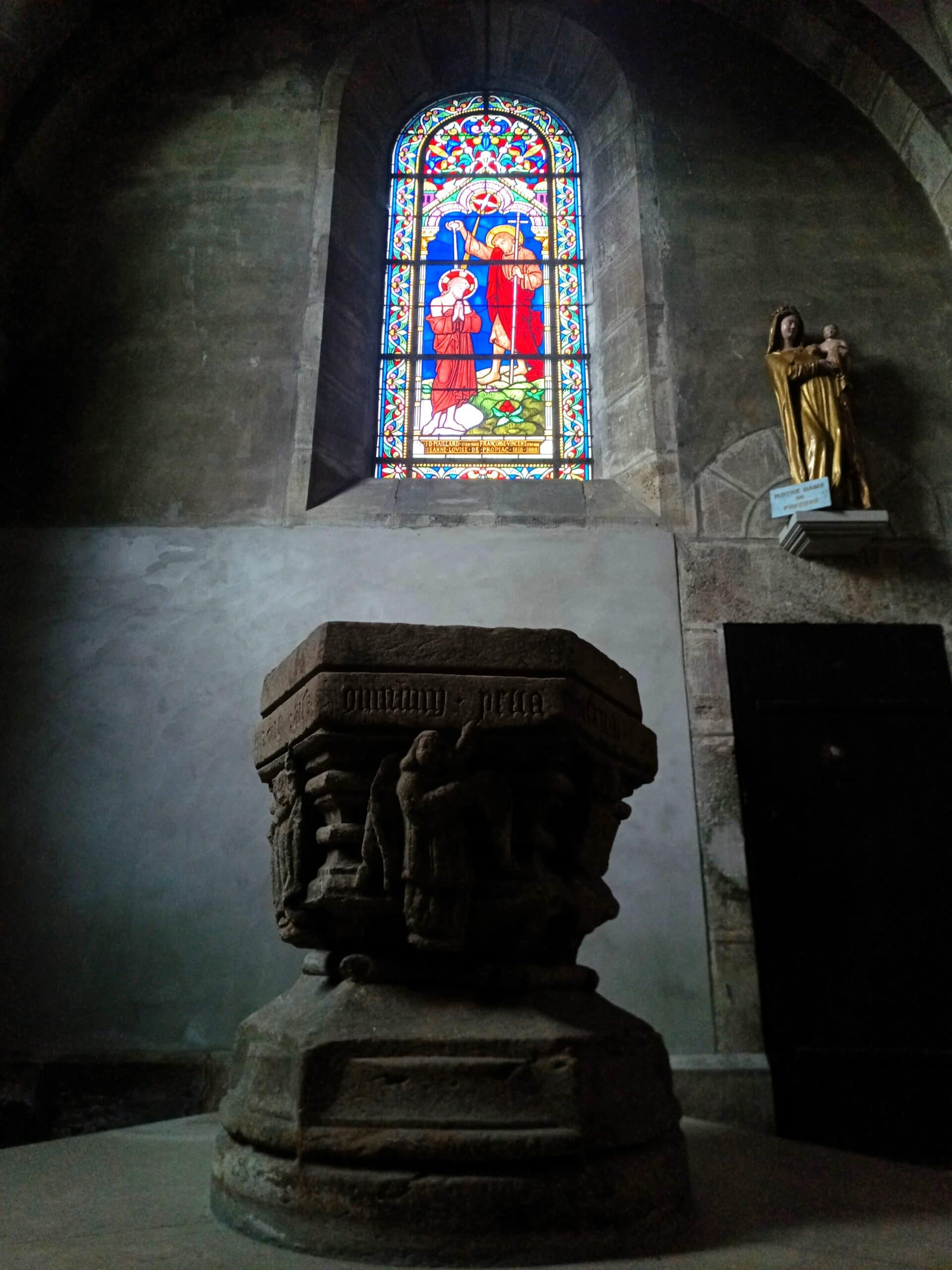 Besonders bemerkenswert ist das Taufbecken aus hellem Stein, dessen Form auf das 15. Jahrhundert datiert wird. Es steht als Symbol für die Kontinuität des Glaubens, der über Generationen hinweg an diesem Ort lebendig blieb.
