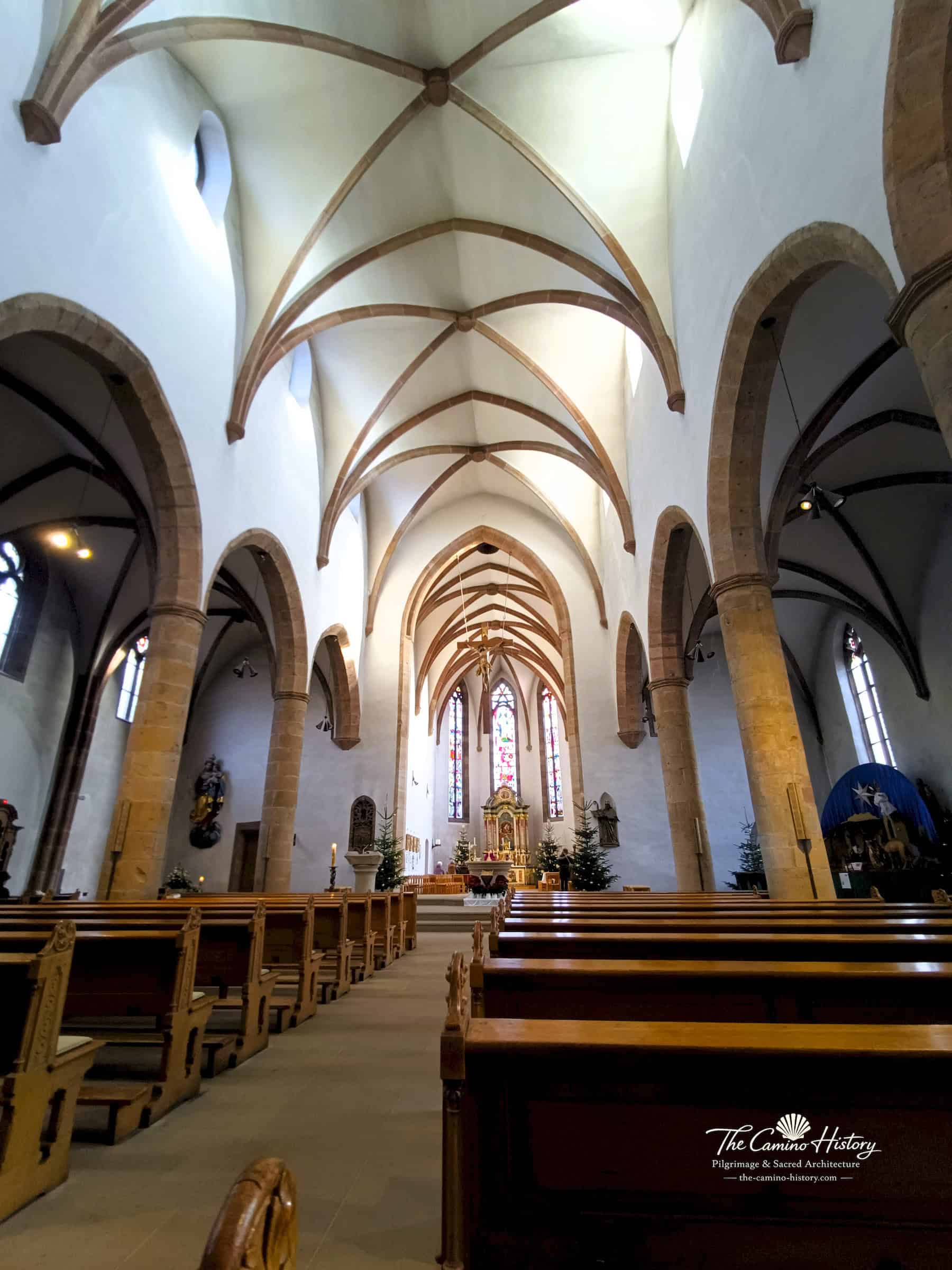 Im Laufe der Jahrhunderte erlebte das Bauwerk religiöse Blütezeiten, politische Umbrüche, Profanierung während der Französischen Revolution, kriegsbedingte Zerstörungen und mehrere tiefgreifende Umgestaltungen. Heute dient die Kirche wieder als Pfarrkirche und bildet einen wichtigen geistlichen Ort entlang des Pfälzer Jakobswegs. Besonders bemerkenswert sind die im 20. Jahrhundert wiederentdeckten mittelalterlichen Fresken, darunter eine Darstellung des heiligen Jakobus, die einen Pilger krönt – ein Motiv, das in besonderer Weise mit der Tradition des Jakobswegs verbunden ist.