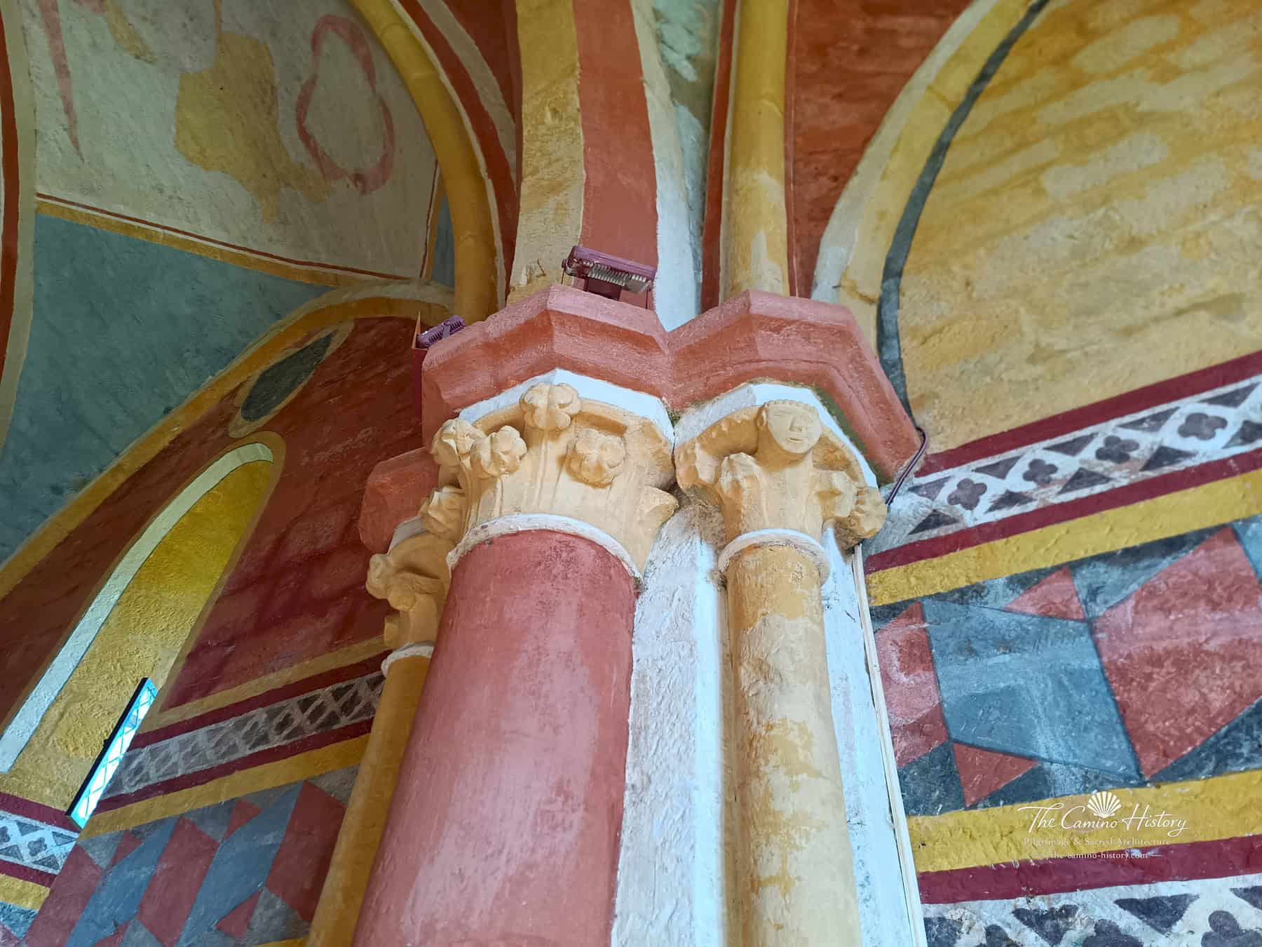 Hier entfaltet sich ein farbenreiches Bildprogramm mit Engelsdarstellungen, die sich über die Rippen des Gewölbes hinweg bewegen. Ihre Körper sind elegant gestreckt, ihre Flügel weit ausgebreitet – ein typisches Merkmal der gotischen Malerei, die Bewegung und Leichtigkeit betonen wollte.