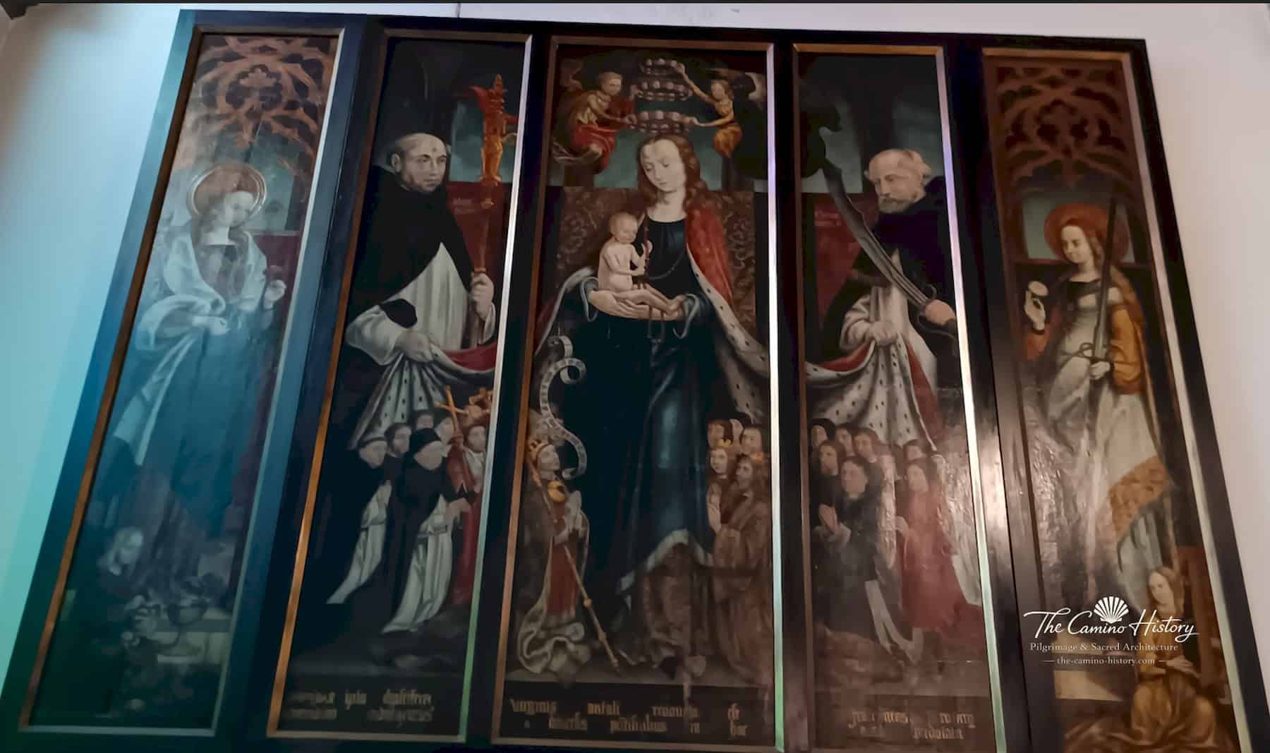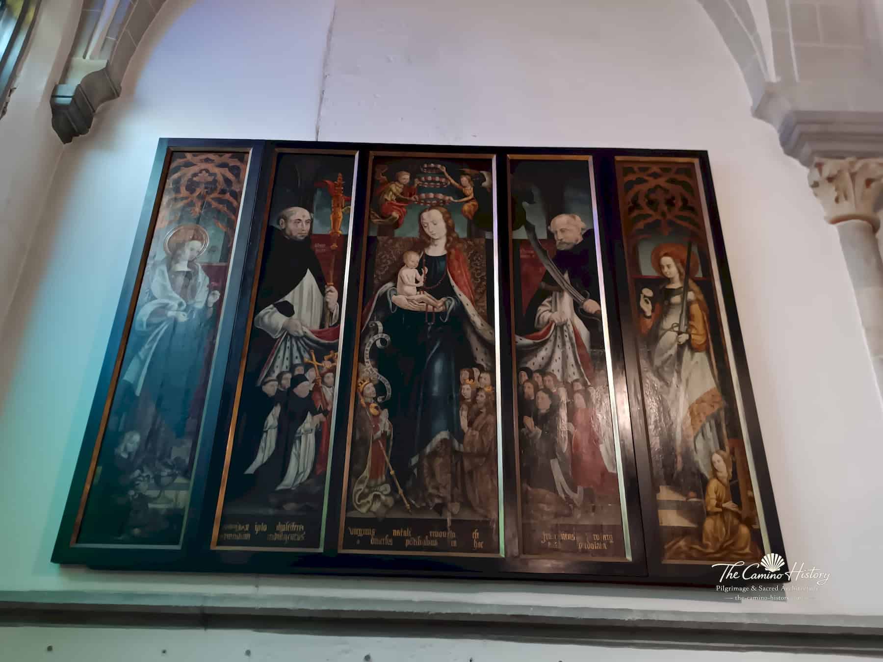 Das Triptychon der Rosenkranzmadonna, ein Meisterwerk aus dem frühen 16. Jahrhundert, ist heute in der westlichen Kapelle des südlichen Seitenschiffs der Kirche ausgestellt. Geschaffen wurde es vom anonym gebliebenen Künstler, der als „Meister von St. Severin“ bekannt ist, einem bedeutenden Maler der Kölner Schule, dessen Werke sich durch präzise Linienführung, intensive Farbgebung und tiefe Symbolik auszeichnen.